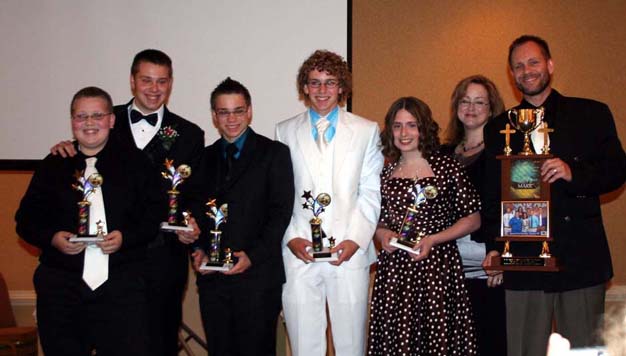 The championship division was won by Owasso First Assembly of God, Owasso, OK (pictured). This was the second consecutive year that this church won nationals. They are only the seventh team to do so in the history of Bible Quiz, although they are the third to do so in the previous ten years. They join teams from Denver, CO (1966 and 1967), New Orleans, LA (1983 and 1984), Tempe, AZ (1986 and 1987), Lakeland, FL (1990 and 1991), Orange, CA (2002 and 2003) and Colorado Springs, CO (2006 and 2007). If wins during the preliminary rounds are included, Owasso won 48 consecutive games at national finals which is a record. Counting the wins only during the regular rounds, Owasso has the second-best two-year record of all time with 37 wins and 1 loss (the best was Orange, CA, in 2002 and 2003, who was undefeated both years). The second place team was Cedar Park AG, Bothell, WA. This marks the fourth straight year that Bothell has been in second place. This breaks a 30-year old record held by Riverside, CA for longest second place streak (they were second in 1978, 1979 and 1980). Bothell was the national champion in 2005, though, a feat that Riverside never accomplished. The third place team was Faith AG, Orlando, FL. The challenger division was won by Lakeside AG, Menominee, MI. Menominee was the first known team to make it to nationals from the Upper Peninsula of Michigan.